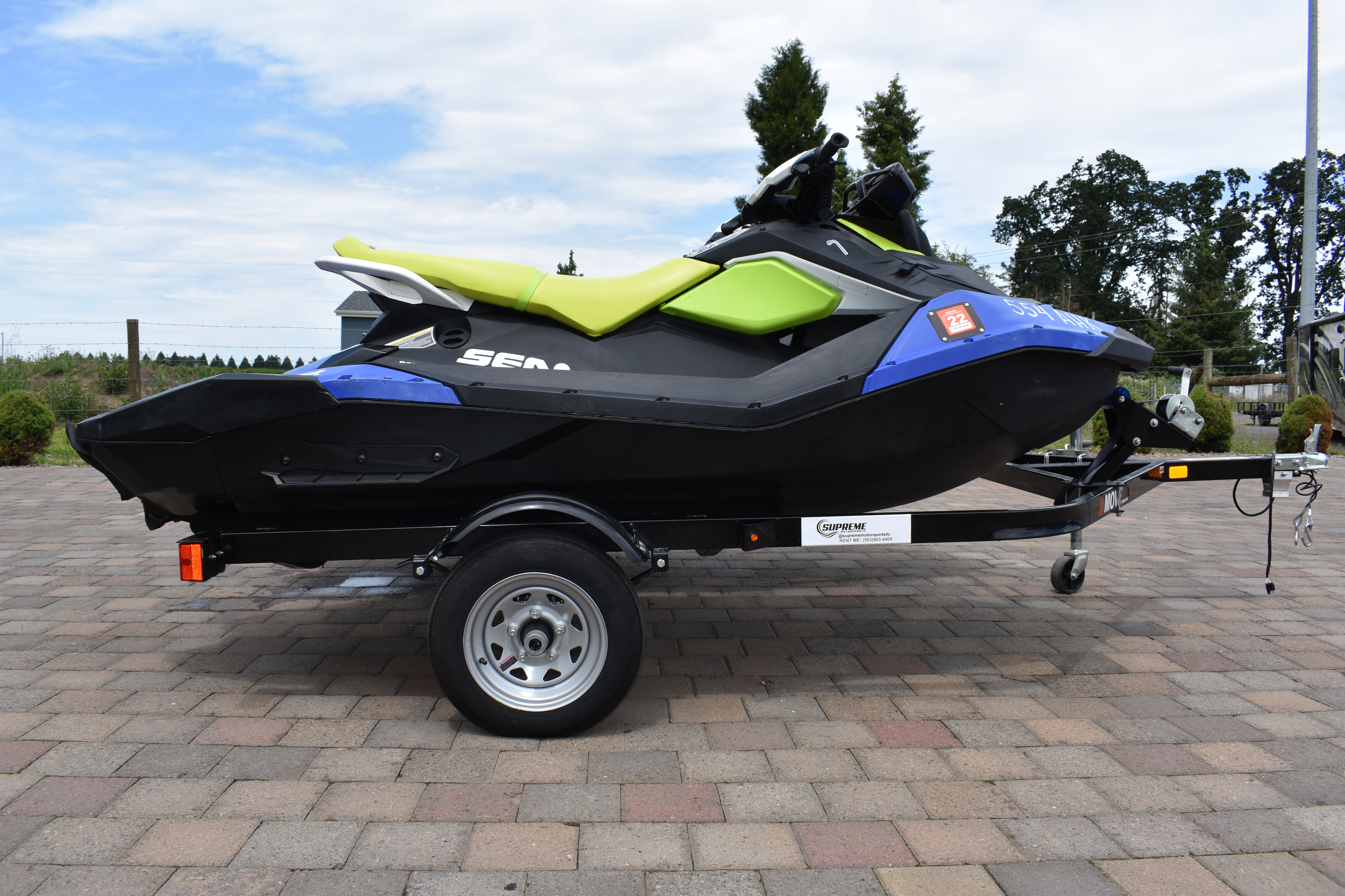Like new 2021 SeaDoo Spark Trixx with only 15 hours. 2018 Shorelander jet ski trailer not included. Jet ski is currently in the water.